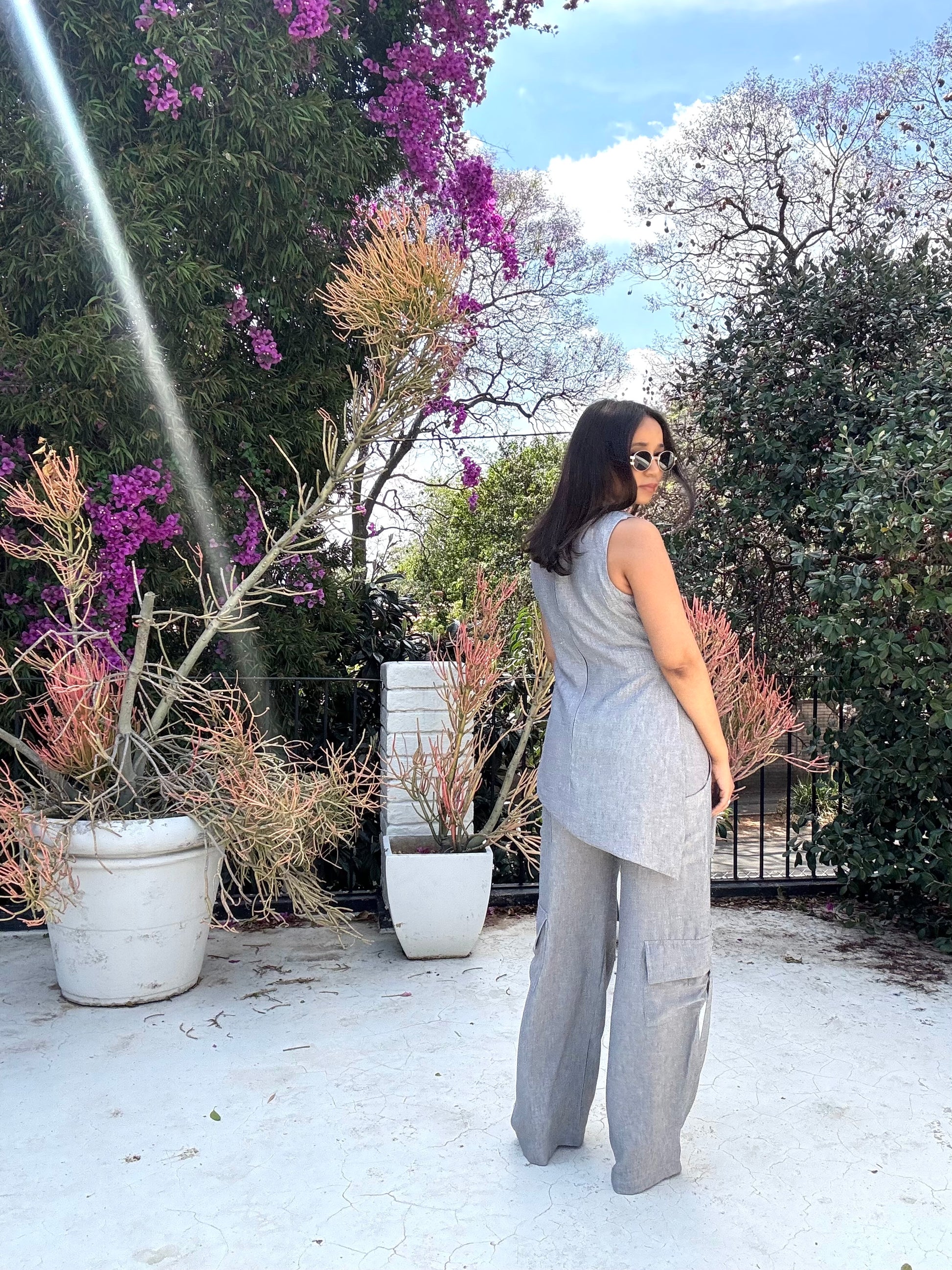 Gathered asymmetric Aura set is the art of effortless style with the Aura Set. The asymmetrical gathered blouse adds a touch of elegance, while the multi-pocket pants provide practicality. Perfect for any occasion, this set will make you look and feel confident. Embrace versatility and comfort with the Aura Set.